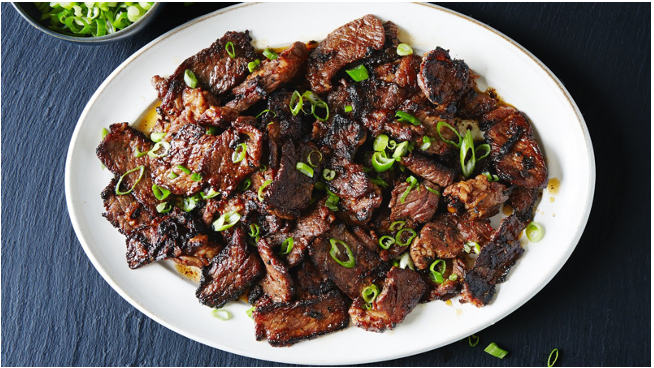 - Heat 1 Tbsp. vegetable oil in a large skillet over medium-high until oil is shimmering. Remove half of meat from marinade, letting excess drip back into bag; season lightly with salt and cook in a single layer without moving until lightly browned, about 1 minute. Toss meat and continue to cook, tossing occasionally, until cooked through and crisp at edges, about 3 minutes. Transfer to a plate. Repeat with remaining 1 Tbsp. vegetable oil, remaining meat, and more salt.